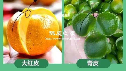 三个不同成熟期采摘制作的陈皮:青皮、二红皮、大红皮的区别主要是在功效和用途上。