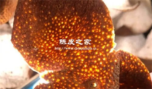 尤其是完全成熟的新会陈皮上的油包,油包越大、越多且红,则表示陈皮的档次越高,品质越好,因为油包中含有挥发油、黄酮类化合物等丰富的内含物。