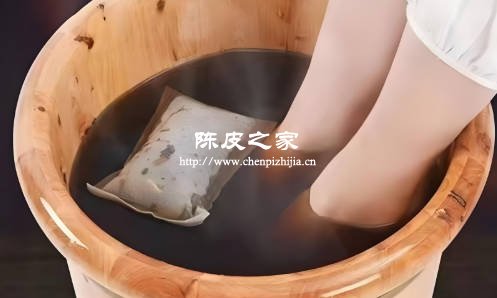 陈皮性温,煮水渣泡脚有助于促进足部血液循环,还可利用其燥湿功效,辅助改善足部易出汗、有异味的状况??芍苯蛹铀沃罂褂?,或者晒干积攒后研磨成细粉,每次取适量用布袋包好用于泡脚。