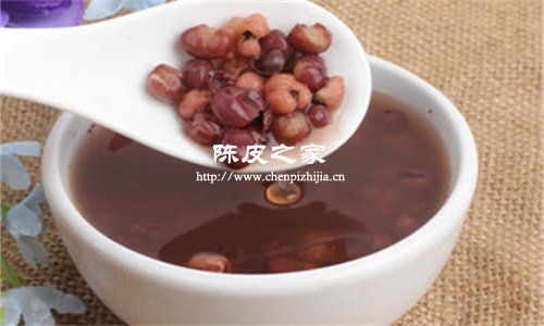 陈皮辛散通温,能够行气宽中;红豆具有一定的健脾开胃的功效,所以两者一起具有健脾开胃的功效和作用。