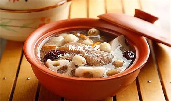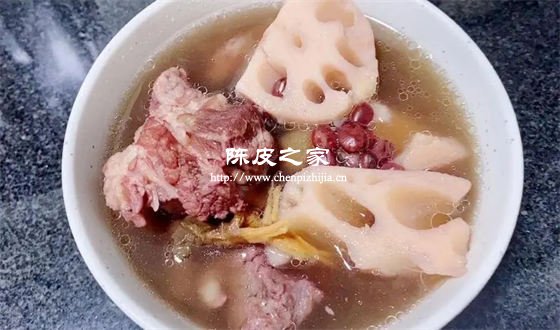 陈皮有理气健脾、开胃的功效,莲藕也有一定的健脾开胃的功效,所以陈皮红豆猪骨汤可以促进食物的消化吸收,起到健脾开胃的作用。