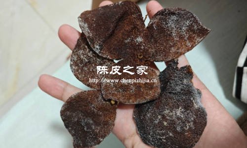 特征:虫眼密集且数量众多,陈皮表面布满了大小不一的孔洞,甚至有些地方已经被虫子蛀蚀成了碎片或粉末状。